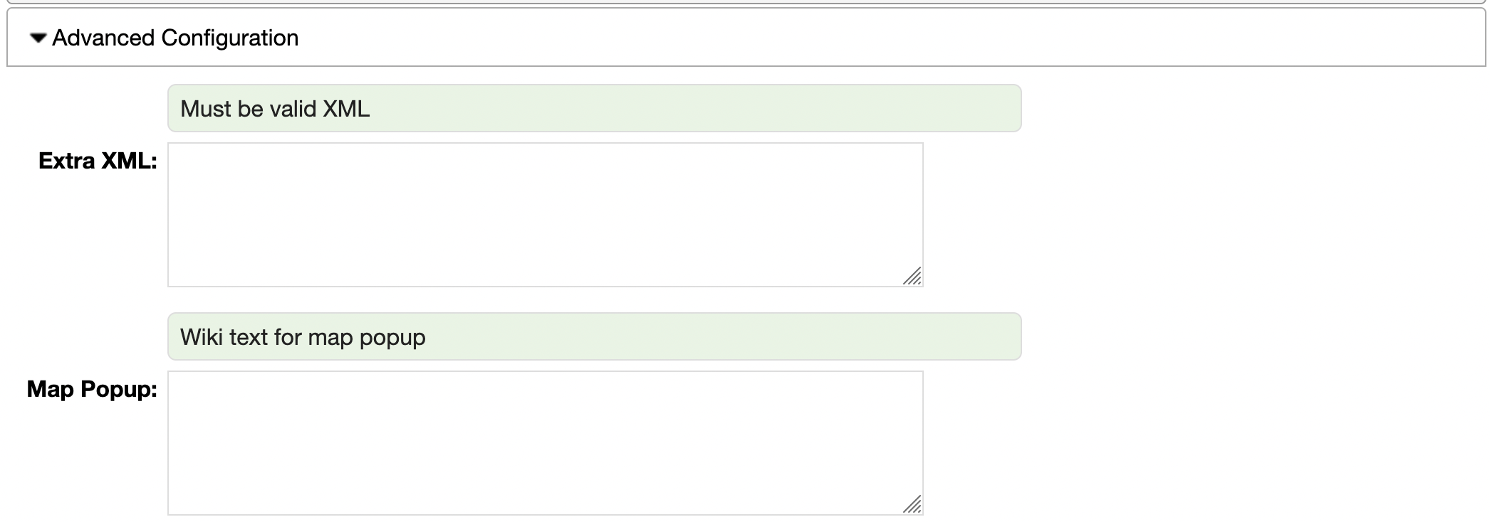 The Map Popup is the snippet of wiki text used when displaying an entry in the map.