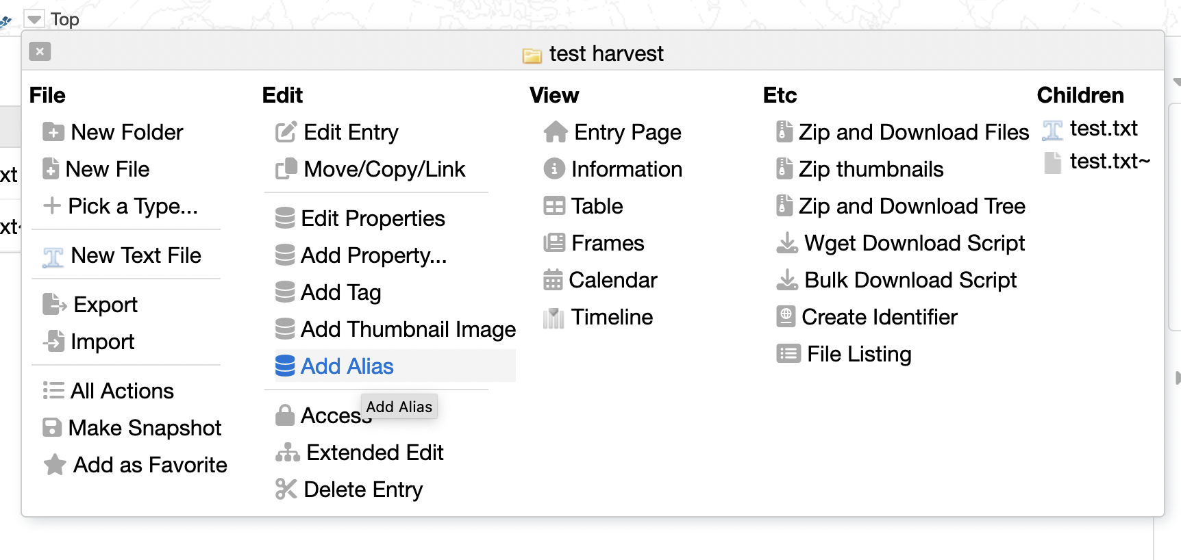 An alias is a property and can be added with the entry menu->Add Alias:
