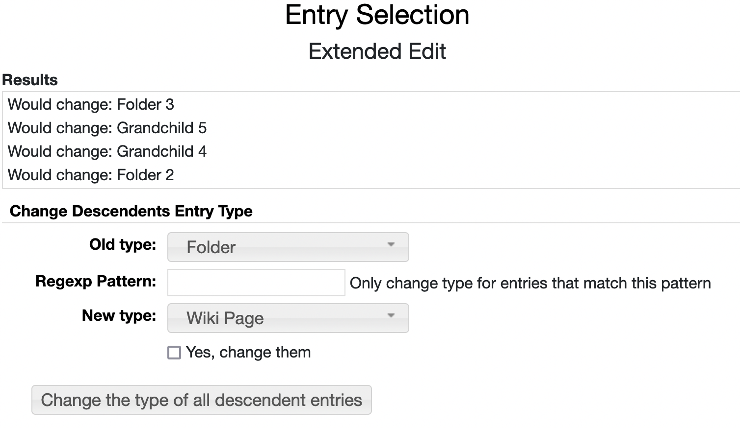 Change Descendents Entry Type
