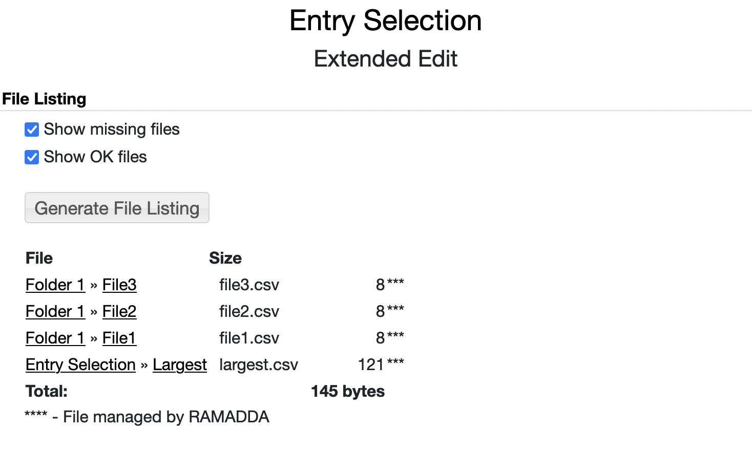 The Generate File Listing will provide a summary of all of the files in the hierarchy. You