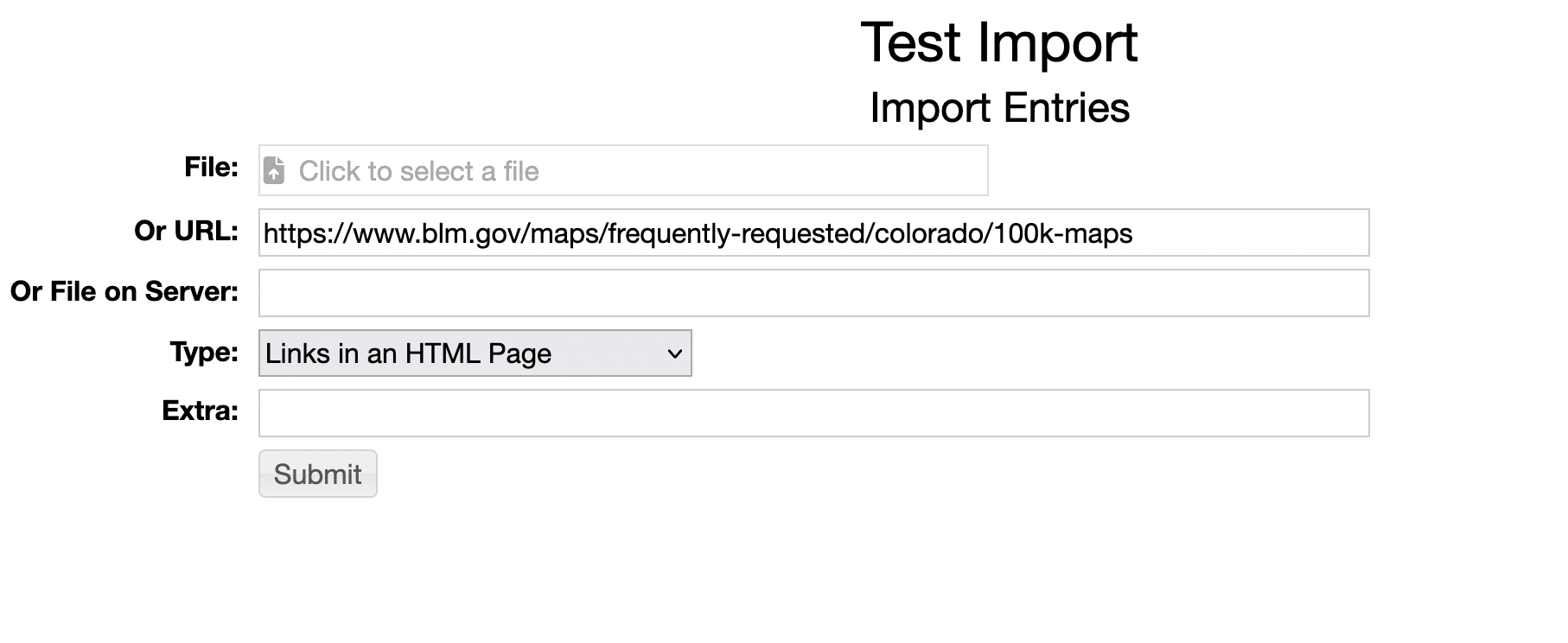 - Partial Test, Full Test, Create Entries - It is best to do a Test before creating entries. The Partial Test will just try a small number of pages and list the results. The Full Test will process all pages.