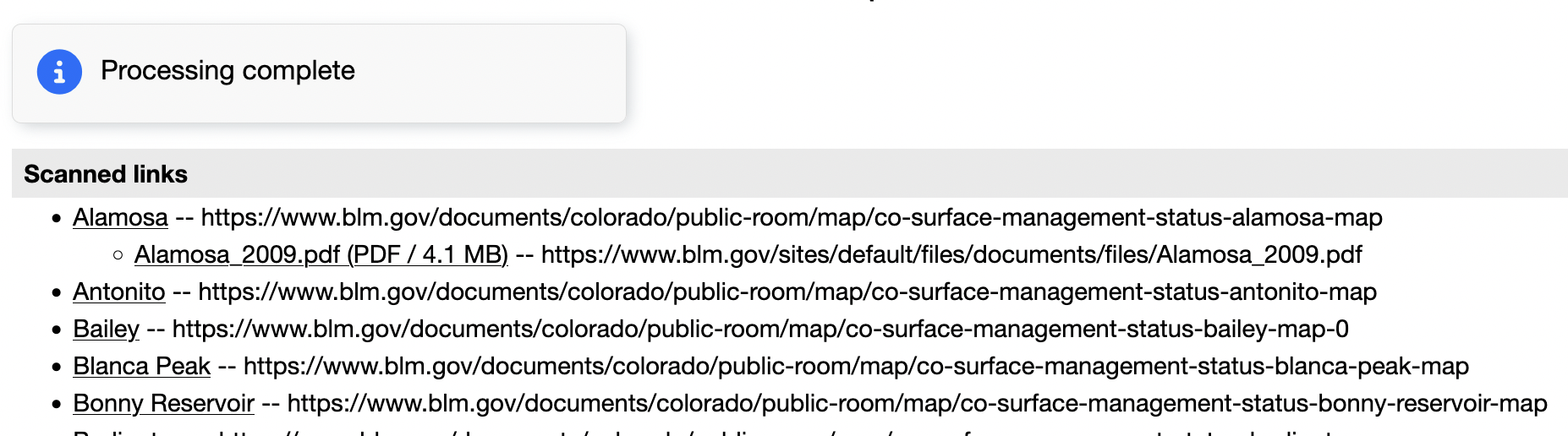 that contain a link to the PDF map file.