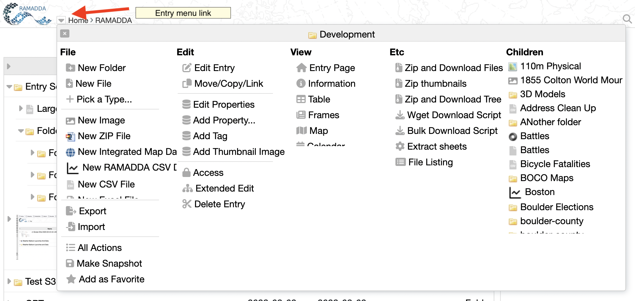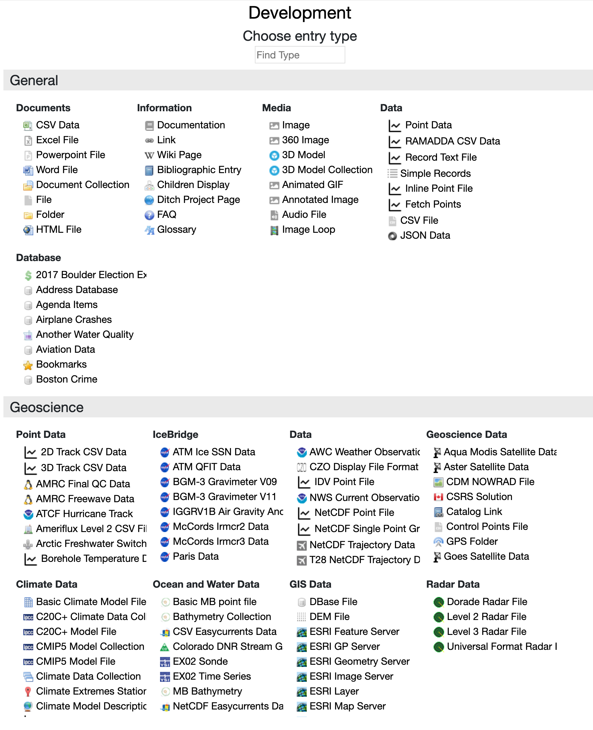 RAMADDA offers many different entry types that can also be created.