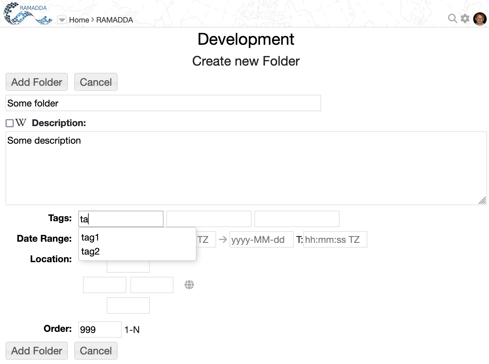 create folder form: