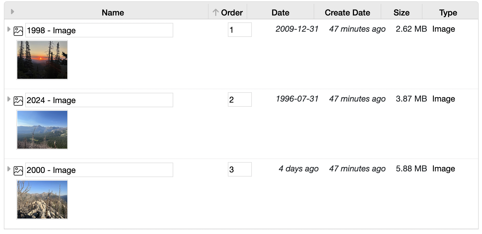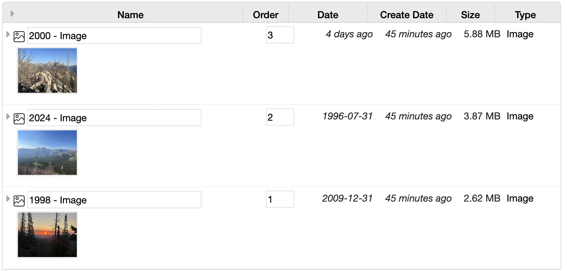 sort order for a photo gallery: