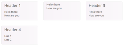 +gridboxes-<number of columns> +gridbox Header 1 contents -gridbox +gridbox Header 2 contents -gridbox -gridboxesFor example: